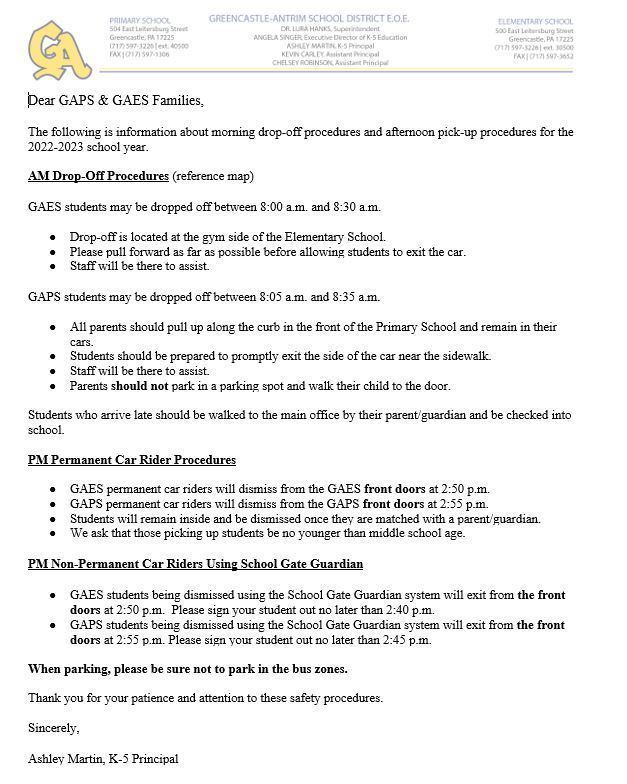 GAPS Drop Off & Pick Up
